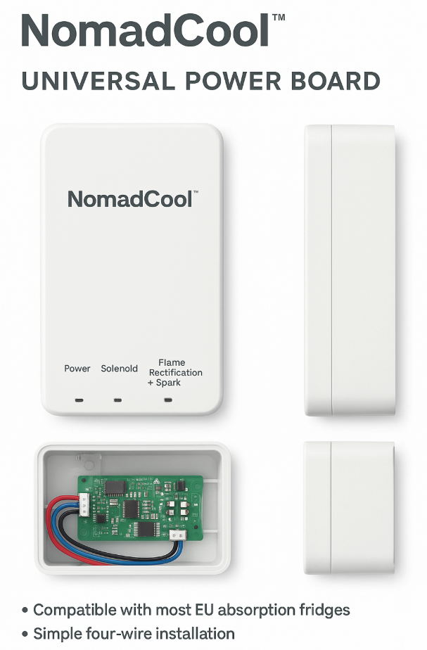 Your absorption fridge works, but its old control electronics can be fragile, complex, and unsafe. The NomadCool™ Universal Power Board replaces both the eyebrow panel and main control board in one simple kit — eliminating outdated, failure-prone systems while improving reliability and safety.